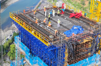 During the pouring operation, the construction personnel perform their respective duties, striving for excellence in every process from concrete laying to compacting. They operate steadily in high-altitude environments, and protective equipment becomes the "first barrier" to protect lives, demonstrating the project builders' reverence for safety and their commitment to quality.